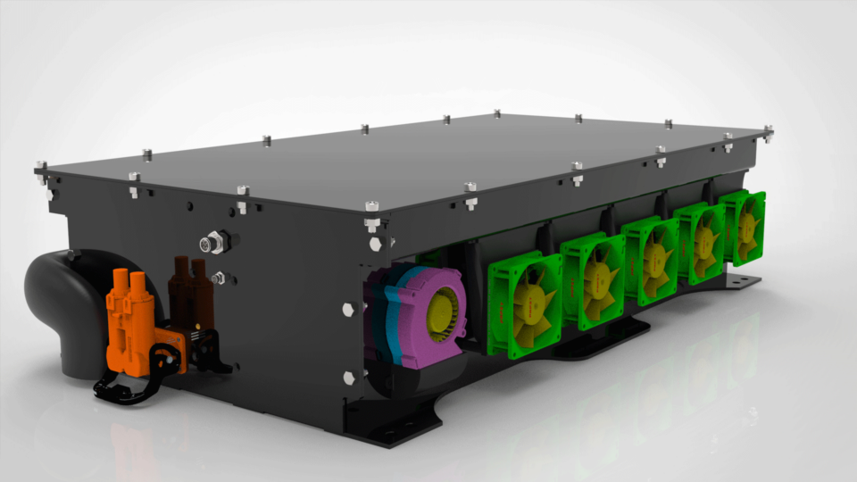 Als technischer Sponsor unterstützt ebm-papst die Studierenden seit rund zehn Jahren mit seinen Produkten. Im aktuellen Fahrzeug übernehmen fünf EC-Lüfter die Kühlung der Hochvolt-Fahrzeugbatterie. Die Axial-Ventilatoren drücken die Luft in die Batterie, die dann durch das gesamte System strömt, um die Zellen zu kühlen. „Die Ventilatoren sind für uns extrem wichtig, denn die Rennevents finden im Sommer statt und da kann es – speziell in Kombination mit der hohen Leistung – richtig heiß werden. Sie sorgen dafür, dass unsere Batterie nicht überhitzt“, erläutert Cavedon. „Im Fahrzeug haben wir wenig Bauraum und unsere Batterie ist sehr klein. Da passte die kompakte Baugröße der Lüfter perfekt“, betont der angehende Ingenieur. „Mit der Qualität und Zuverlässigkeit der Produkte von ebm-papst und dem Luftstrom, den sie uns liefern, sind wir sehr glücklich. Außerdem arbeiten sie effizient und vor allem zuverlässig.“ Bei der Auswahl der Komponenten wurde das Team in der Datenbank schnell fündig. „Wir haben dafür keine technische Unterstützung von ebm-papst benötigt, wissen aber, dass wir bei Bedarf jederzeit darauf zurückgreifen können“, betont Cavedon.
