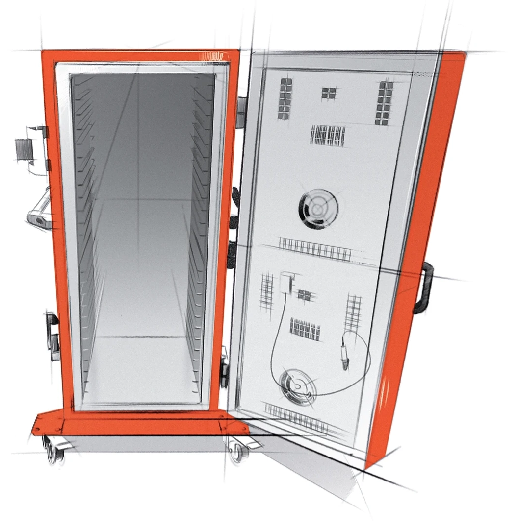 Für das Unternehmen im Sauerland geht es in der Zusammenarbeit mit ebm-papst vor allem um gute, auch mal unkonventionelle Ideen, Schnelligkeit und Zuverlässigkeit. Für David May, Vertriebsaußendienst bei ebm-papst, genau die richtige Aufgabe. Er und die drei von CoolCooking ticken gleich und finden Lösungen, um das Beste aus der Box herauszuholen. Eine lange Lebensdauer steht im Fokus. Und weil die Technik ausschließlich in der Tür dieser mobilen Box eingebaut ist, spielt die Kompaktheit der vier Radiallüfter und zwei Saugzuggebläse eine entscheidende Rolle.