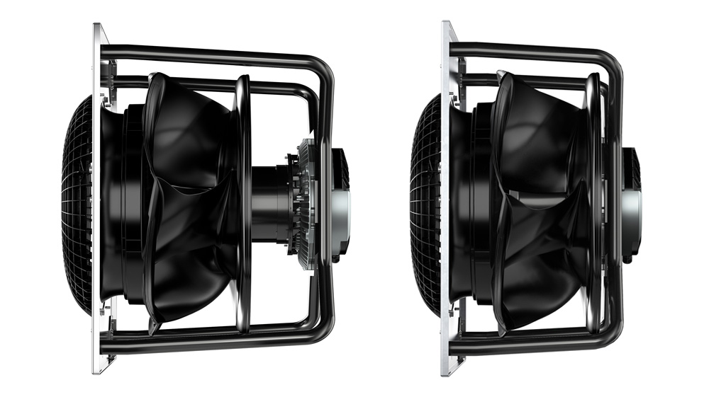 Um unterschiedlichen Einbausituationen gerecht zu werden, gibt es die neuen Radialventilatoren in einer Standard- und einer Kurzversion (Bild 5). Bei den leistungsstärksten Standardtypen wird das Laufrad so am Motor befestigt, dass dieser keinen negativen Einfluss auf die strömungstechnische Effizienz hat. Bei der Kurzversion taucht der Motor ins Laufrad ein. Diese Ventilatoren bauen kompakter, arbeiten dabei trotz des im Vergleich zur Standardversion etwas kürzeren axialen Einbaumaß deutlich effizienter als vergleichbare Vorgängermodelle.