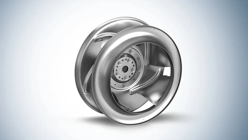 Die nach materialspezifischen und aerodynamischen Gesichtspunkten gestalteten Einzelteile ermöglichen eine nahezu uneingeschränkte 3-D Formgebung. So arbeiten die Laufräder mit fünf Schaufeln und der verbesserten Geometrie deutlich leiser und effizienter im Betrieb als sein Vorgänger in Metallausführung. Durch eine dazu noch bessere Festigkeit der Laufräder können, bei fast identischem Gewicht, zudem noch höhere Drehzahlen erreicht werden. Das sorgt außerdem für eine gesteigerte Luftförderung bei gleichen Abmessungen. Der maximale Laufraddurchmesser beträgt dabei 800 mm. (Bild 4).