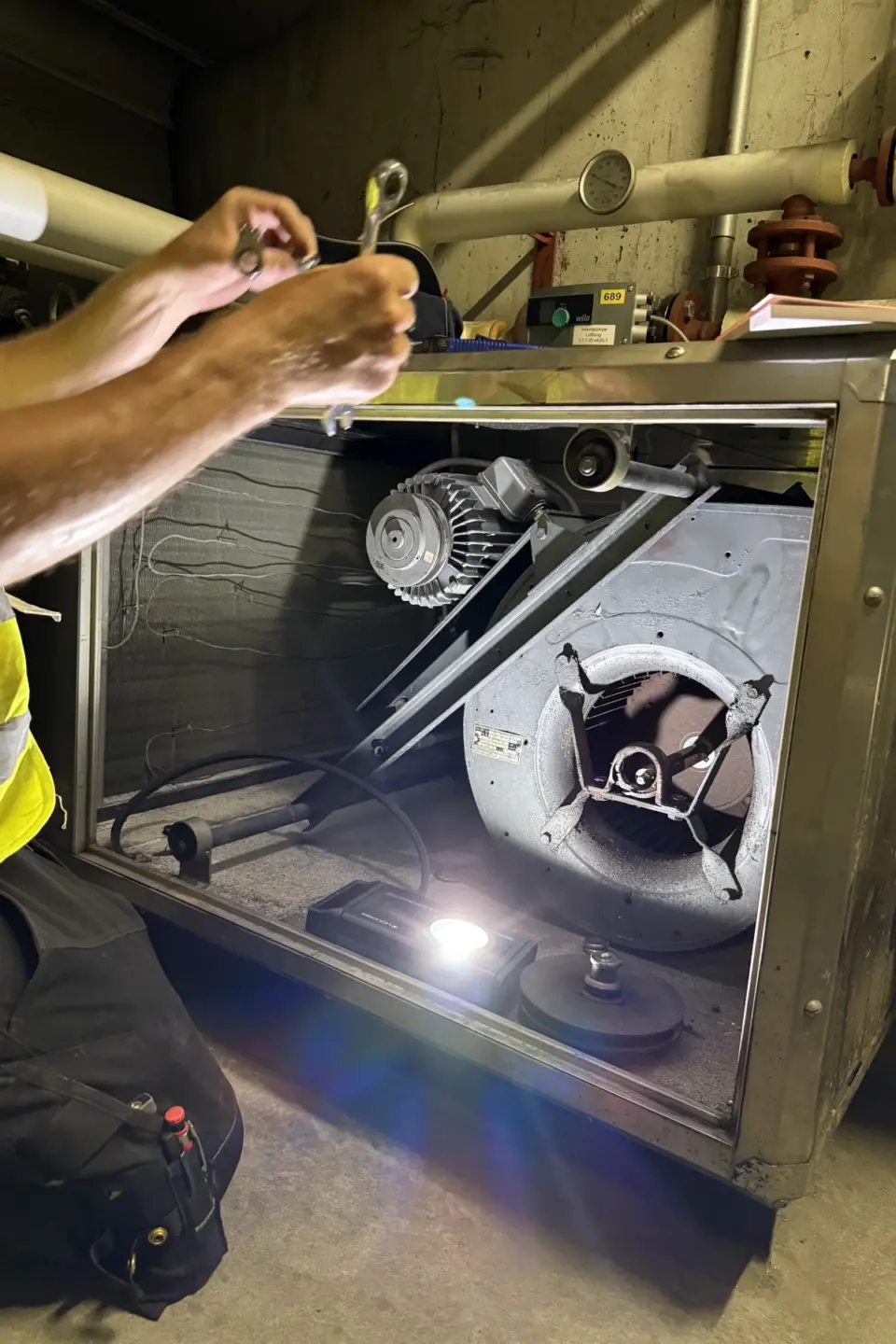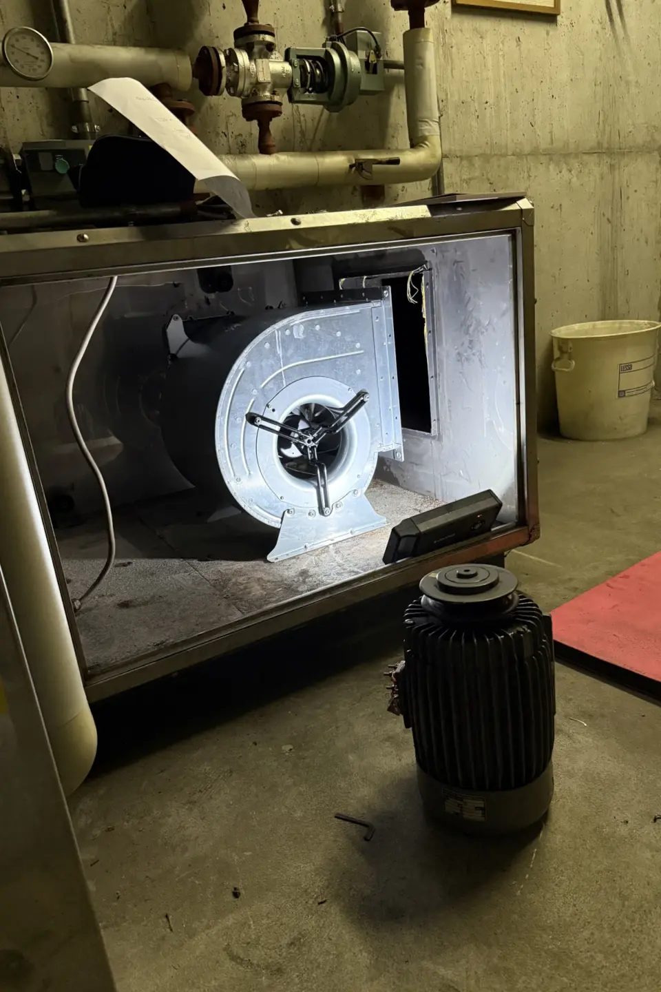 Eine Umkleide für Mitarbeitende im Feldschlösschen konnte nicht mehr be- und entlüftet werden – das Laufrad des zuständigen AC-Ventilators war nach unzähligen Jahren Betriebszeit von seiner Befestigung abgerissen. Eine schnelle Instandhaltungsmaßnahme musste her. Die Herausforderung: Der alte Ventilator war in einer großen Monoblock-Anlage verbaut. Sebastian Haude, Utilities Manager bei der Feldschlösschen Supply Company AG, erklärt: „Aus betriebswirtschaftlicher Sicht kam die Installation eines neuen Monoblocks nicht in Frage – das wären Kosten von um die 30.000 Schweizer Franken gewesen.“ Die Technik-Abteilung wandte sich an die R. Haesler AG, mit der sie schon länger intensiv zusammenarbeiten.