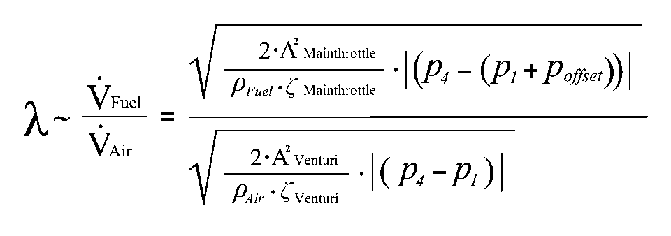The formula for the combustion air ratio in the electronic-pneumatic system