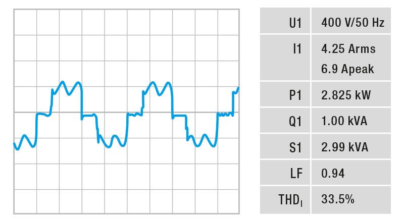 Power factor (λ) = 0.94; THDI 33.5%